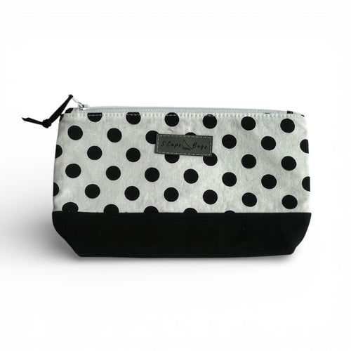 "I love the bag; it’s perfect as a makeup bag or some toiletries for a weekend, a crystal collection. The materials (it’s lined!) are great quality. So glad I found a local maker for beautiful bags! The bottom is made so the bag can ‘stand up’."